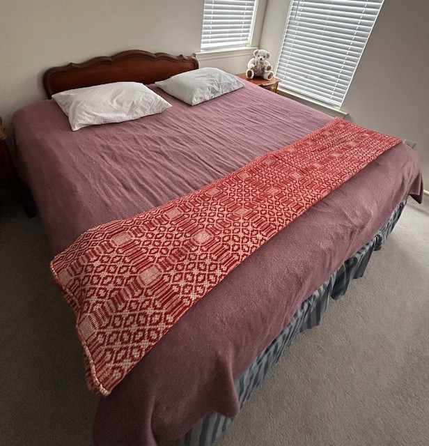 Yes, it's really 150 years old ? a Decorator and Collector?s Dream! (You won?t find this anywhere else.) Real 1840?s MUSEUM quality, reversible Coverlet - with a Romantic History (and perfect red/white colors). This was a WEDDING GIFT (in 1840) and donated to H2O Planet by the original Family Members, for our Valentine?s Auction. See photos.) Item is an original ANTIQUE ?Jacquard Coverlet? ? a gorgeous example of Vintage Textile Artistry, showcasing intricate patterns made with a Jacquard Loom. The Blanket / Coverlet is in MINT condition (with no marks, no stains, no fading; it appears to have never been used) ? and has been stored in Family Cedar Chests for the past 150 years. ?Jacquard Coverlets? highlight the exceptional weaving techniques of early 19th Century America. The CENTER SEAM confirms the authentic Age, since this was found only in Colonial Blankets created between 1830?s and 1850?s. A ?Jacquard Coverlet? was usually created as a Wedding or Birth Gift (and often found in a young woman?s Dowrey or Hope Chest). Those with CENTER SEAMS were woven on hand-powered looms (used between 1830 and 1855, until Weavers left to fight the Civil War. After 1860, most textiles became factory-woven). Coverlets with CENTER SEAMS came from the narrower HAND-POWERED Looms (which were only wide enough to produce smaller panels, requiring the Weaver to sew them together, typically with wool or linen thread, so they could cover the entire bed). The pattern of this Coverlet confirms it was produced between 1820 and 1850. Jacquard Coverlets were double-woven, had reversible designed, and made with 2-ply Wool and imported Madder Dyes (giving them the antique red/brown coloring, popular during the mid-1800?s). The Coverlet is LARGE, thick, heavy, and well-made. Size is 91? Length and 71? Width (with a red/cream, reversible pattern). In photos, it is pictured on a king-sized bed, to help provide Size Estimates. Coverlet can be shipped nationwide to Winning Bidder (with insurance) or picked up for FREE in Enfield, CT. Perfect for Collectors, Historical Museum Displays, or those who love Vintage-decorated Homes.