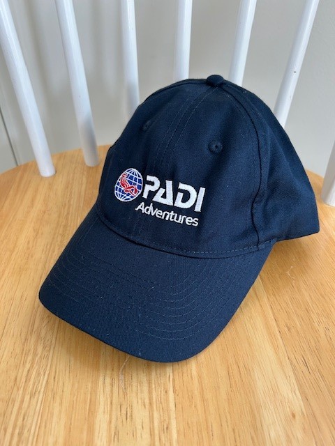 Fun for all Divers or Ocean Lovers! Navy Blue "PADI Adventures" Baseball Cap. (NEW, never worn). Has adjustable Velcro Backstrap (so fits all sizes). Navy blue with white logo. This item can be shipped nationwide to Winning Bidder or picked up for FREE in Enfield, CT. Perfect to wear year-round for sun and eye protection.