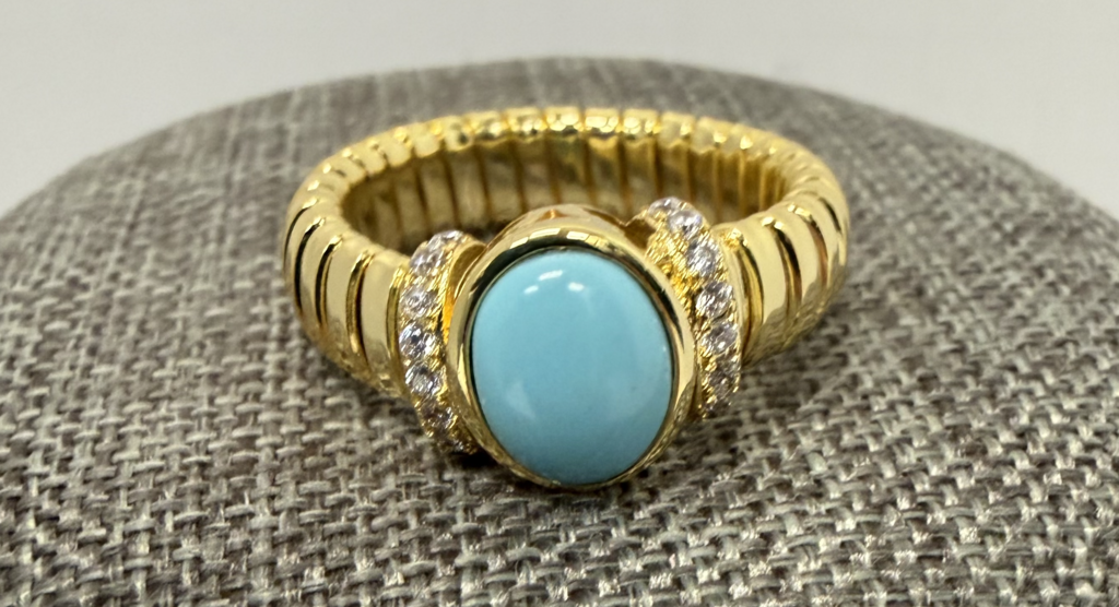 Adina Eden Pave Accented Turquoise Colored Stone Ridged Ring