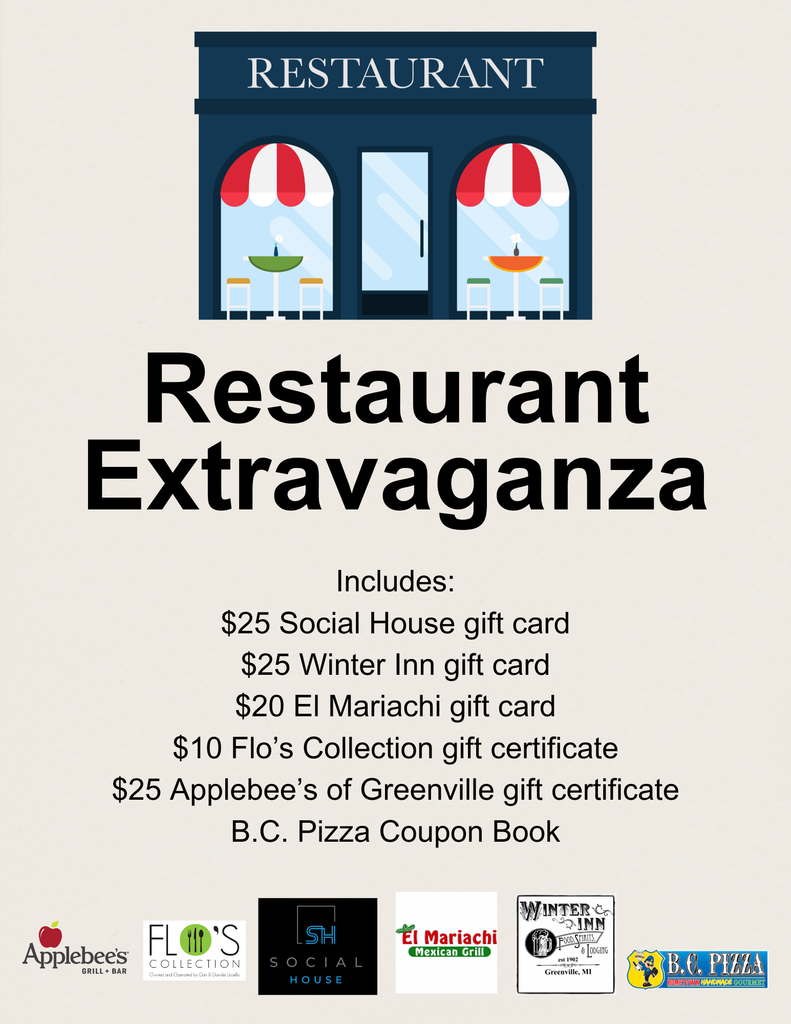 Donated by Social House, Winter Inn, El Mariachi, Flo's Collection, Applebee's of Greenville, and BC Pizza of Greenville