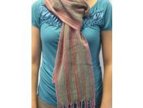 Hand-woven Scarf: Pink & Green Silk Blend