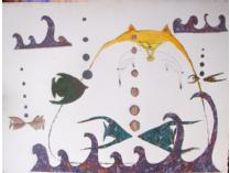George Vye "At the Aquarium" print, from painting, collage and watercolo