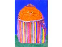 George Vye "Cat as King" print from painting, watercolor, 23 x 30