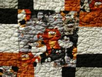 Homespun Masterpiece: Handmade Calico Cat Quilt, 52" x 52"