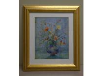 "Ready to Bloom" Original Cat Art by Leslie Cobb |