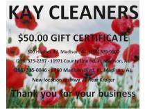 | $50 Gift Certificate to Kay Cleaners | 164 | Kay Cleaners | 50USD | 20USDSOLD | CLOSED |