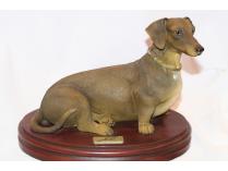 Nico Dachshund Figurine on Wooden Base Made in Spain