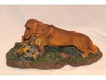 Red Dachshund with Butterfly In Woods Resin Figurine