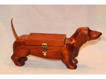 Hand Carved Wooden Dachshund Trinket Box Signed by R. Bohrer
