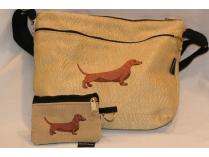 Dixie Bags Brown / Red Dachshund Medium Handbag with Small Change Purse