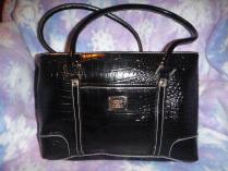 Liz Claiborne Black Textured Design Double Stitch Shoulder Bag Purse
