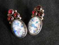 Opal, Garnet and Sterling Silver Clip-On Earrings