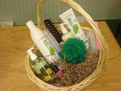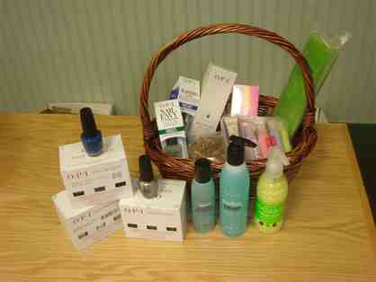 Basket of O.P.I. products for a do-it-yourself manicure and pedicure