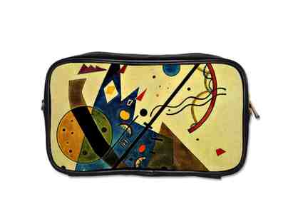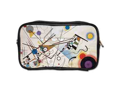 "COMPOSITION 8"/KANDINSKY: UNISEX LEATHER ESSENTIALS BAG W/ART INSET, DETACHABLE STRAP |