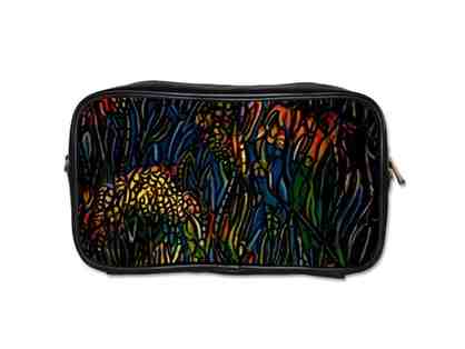 "FIELD OF DREAMS": UNISEX LEATHER ESSENTIALS BAG W/ART INSET, DETACHABLE STRAPS |