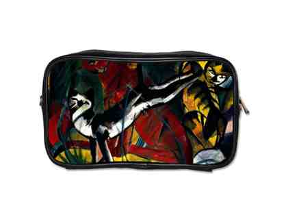 "THREE CATS" Franz Marc: UNISEX LEATHER ESSENTIALS BAG, w/ART inset, detachable strap |