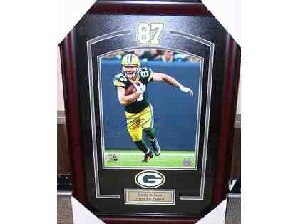 Jordy Nelson -11"X14" photo autographed, framed laser cut double suede m