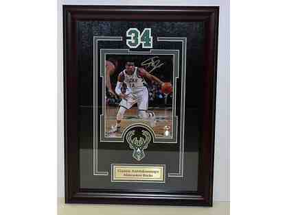 Giannis Antetokounmpo 8"X10" photo autographed, framed with laser cut do
