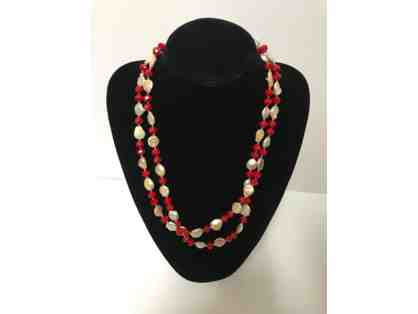 Original Swarovski Crystal (Crimson Rose) Bead, Cultured Coin Pearl Neck