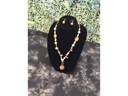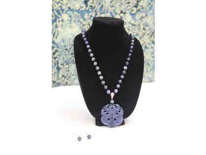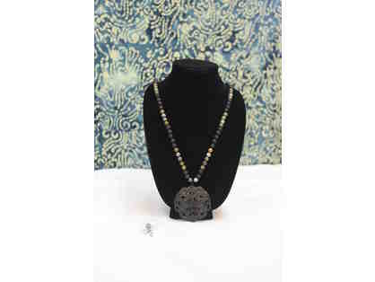 Necklace & Earrings: Jade, Volcanic Beads and Quartz Medallion