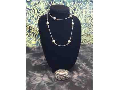 Silver Colored Metal with Pearls and Silver Colored Metal Bracelet