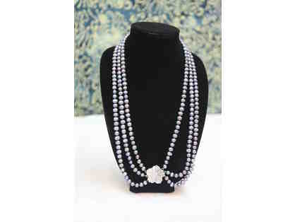 Three Strand Blue Pearl Necklace with Mother of Pearl and Sterling Clasp