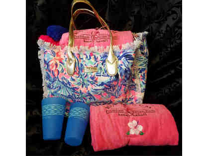 Lilly Pulizter Tote Bag and Koloa Rum Towel & Tumbler Beach Set