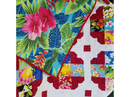 Hawaiian Quilted Green and Yellow Pineapple Runner