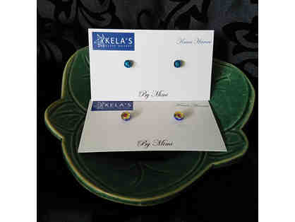 2 Pairs of Stud Dichroic Glass Earrings by Kela's Designs with Lotus Can