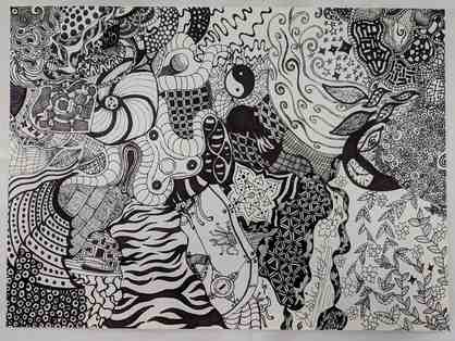 Art by GRACE 1st Grade- "100 Hearts (oil pastel - 30"x30")