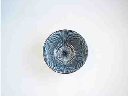 Kotobuki Blue and White Striped Flower Bowl
