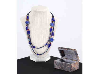 Cloisonne and Glass Bead Necklace with Soapstone Box