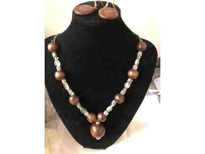 Bead and brown wooden necklace w earrings