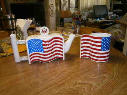 American flag teapot and mug 218 Linda Barber and Jill Simmons 14USDSOLD CLOSED