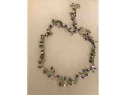 silver necklace with blue and aqua beads
