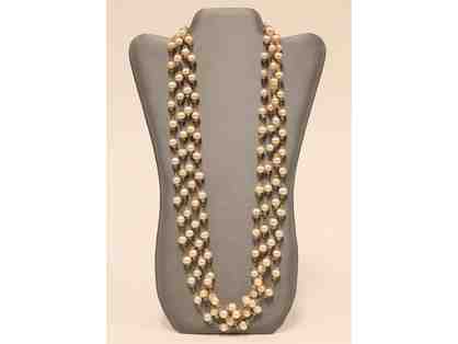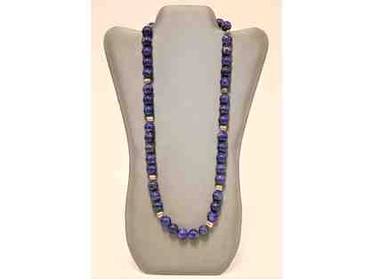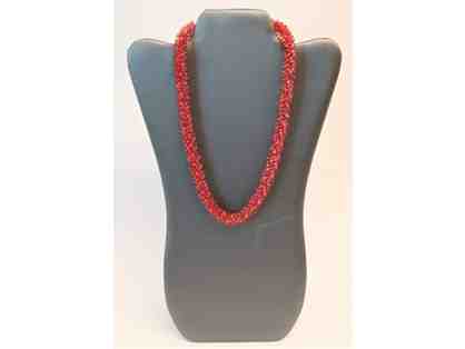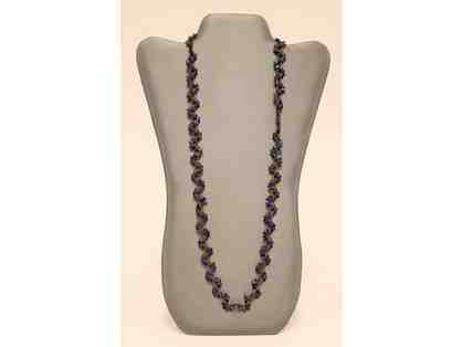 Handcrafted Necklace with Copper Rings and Iridescent Glass Beads