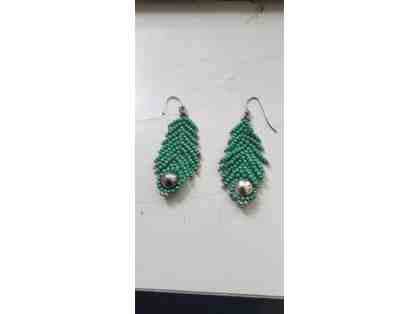 Handmade Green and Silver Delica and Seed Bead Earrings by Davala Designs