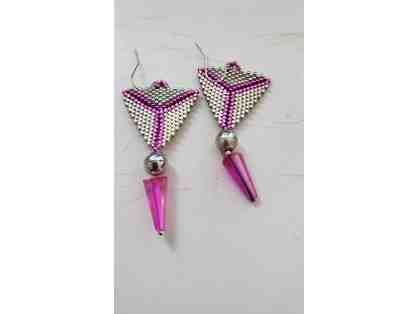 Handmade Pink & Silver Delica and Seed Bead Earrings by Davala Designs
