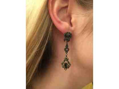 Handmade Black, Red & Gold Delica and Seed Bead Dangle Earrings by Daval