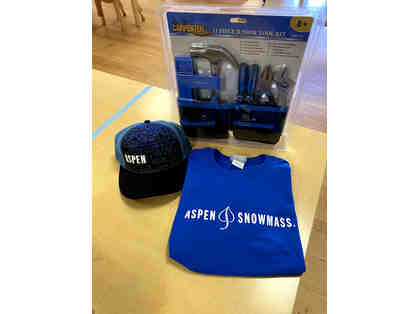 Aspen Snowmass Blue Shirt (Size S) + Trucker Hat + Jr. 11 Piece Tool Kit |