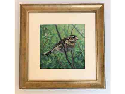Framed Rose-breasted Grosbeak Pastel by Lesley Heathcote