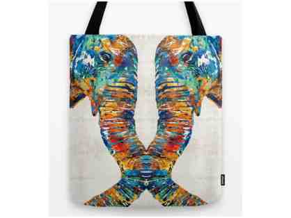 Art on Premium Tote: COLORFUL ELEPHANTS (16 inches)