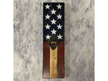 American Flag Wood Hanging Bottle Opener - Red, White and Blue