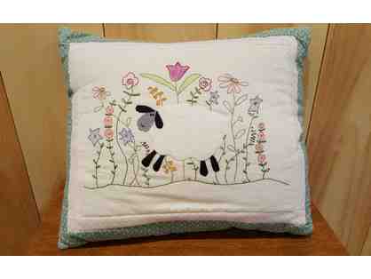 Hand-embroidered "Lamb's Day Out" Pillow