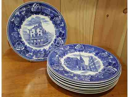 Vintage Wedgwood Blue Transferware Commemorative Plates - 7 Pieces
