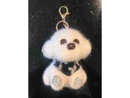 Large fluffy knit Bichon with bling paws and ears Keyring
