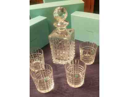 Tiffany PLAID DECANTER with 4- DBL OLD FASHION GLASSES