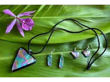 Iridescent Dichroic Art Glass Pendant & 2 Earring Sets by Lori Kizer, Ka
