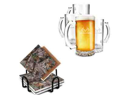 Real Tree Set of 4 Beer Mugs and 4 Matching Coasters