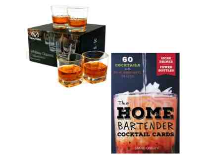 Real Tree Set of 4 Whiskey Tumblers and Home Bartender Cards